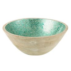 Informations Techniques : Dimensions : D. 35 x H. 15 cm Matières : 95% Bois (Manguier) & 5% Verre Spécificités : Robuste & Utile Saladier mosaïque Vendu à l'unité Poids : 1,84 kg Couleur : Vert