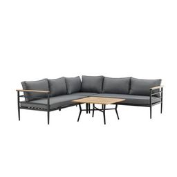 Informations Techniques : Dimensions : Canapé : L. 233 x l. 54 x H. 46 cm Assise : L. 146 x H. 29 cm Table : L. 80 x l. 80 x H. 43 cm Matières : Canapé : Aluminium, Bois (Teck), Polyester & Mousse Table : Aluminium & Bois (Teck) Spécificités : Moderne & Élégant Salon de jardin d'angle design Cana