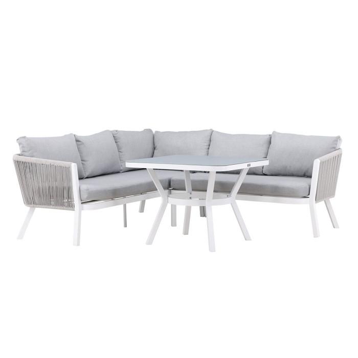 Salon d'Angle de Jardin Virya 206cm Blanc & Gris