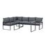 Informations Techniques : Dimensions : Canapé : L. 176/241 x l. 69 x H. 66 cm Assise : L. 170 x l. 45 x H. 34 cm Table : L. 135 x l. 70 x H. 67 cm Matières : Acier, Polyester & Verre Spécificités : Confort & Élégant Salon d'extérieur 6 places design Coussins inclus Table basse avec plateau en verr