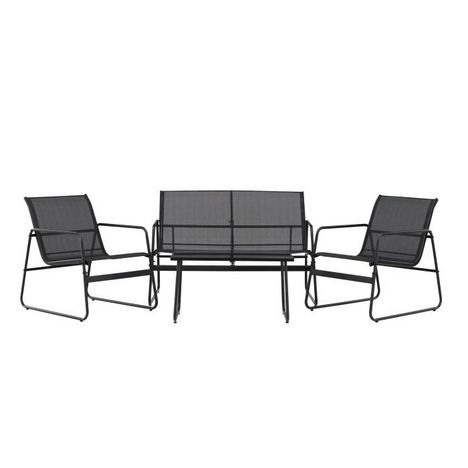 Informations Techniques : Dimensions : Canape : L. 110 x l. 71 x H. 75 cm Fauteuils : L. 56 x l. 71 x H. 75 cm Table : L. 75 x l. 44,5 x H. 41 cm Matières : Acier, Textilène & Verre Spécificités : Élégant & Confort Salon de jardin 4 places design Table avec plateau en verre Assise en textilène Conti