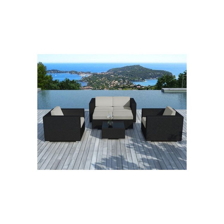 Salon de Jardin en Résine Tressée Portofino 82cm Gris & Noir