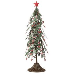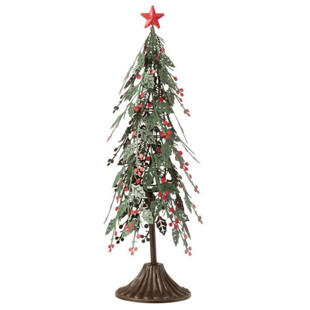 Sapin de Noël à Poser Feuilles 40cm Vert & Rouge