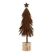 Informations Techniques : Dimensions : D. 12 x H. 39 cm Matières : 60% Métal & 40% Bois (Eucalyptus) Spécificités : Original & Tendance Sapin de Noël sur pied Effet velours À poser Forme ronde Vendu à l'unité Poids : 0,39 kg Couleur : Marron