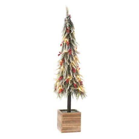Informations Techniques : Dimensions : L. 22 x l. 22 x H. 95 cm Matières : Plastique, Polystyrène & Coton Spécificités : Artificiel & Festif Sapin de Noël à LED à poser Design enneigé Vendu à l'unité Poids : 1,11 kg Couleur : Vert & Rouge