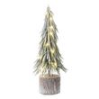 Informations Techniques : Dimensions : L. 12 x l. 12 x H. 45 cm Matières : Plastique, Polystyrène & Coton Spécificités : Artificiel & Festif Sapin de Noël à LED à poser Sur socle tronc d'arbre Design enneigé Vendu à l'unité Poids : 0,23 kg Couleur : Vert