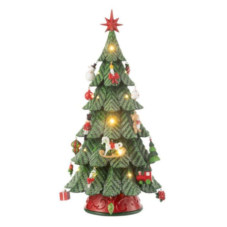 Informations Techniques : Dimensions : L. 24,5 x l. 24,5 x H. 51,5 cm Matières : 55% Chaux (Poudre) & 45% Résine Spécificités : Déco & Festif Sapin de Noël à LED à poser Design texturé enneigé Poids : 2,2 kg Couleur : Multicolore