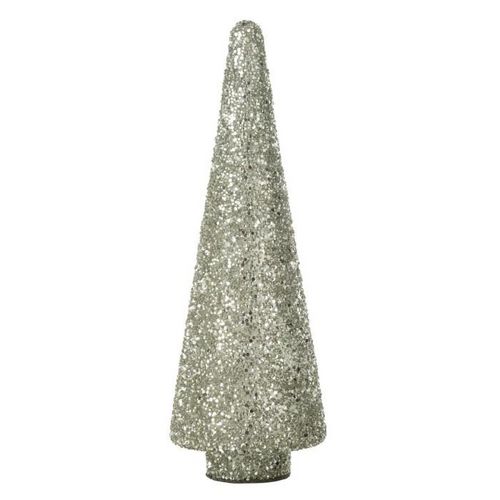 Informations Techniques : Dimensions : D. 14 x H. 39 cm Matière : Verre Spécificités : Festif & Élégant Sapin de Noël déco Avec paillettes Vendu à l'unité Poids : 0,95 kg Couleur : Argent
