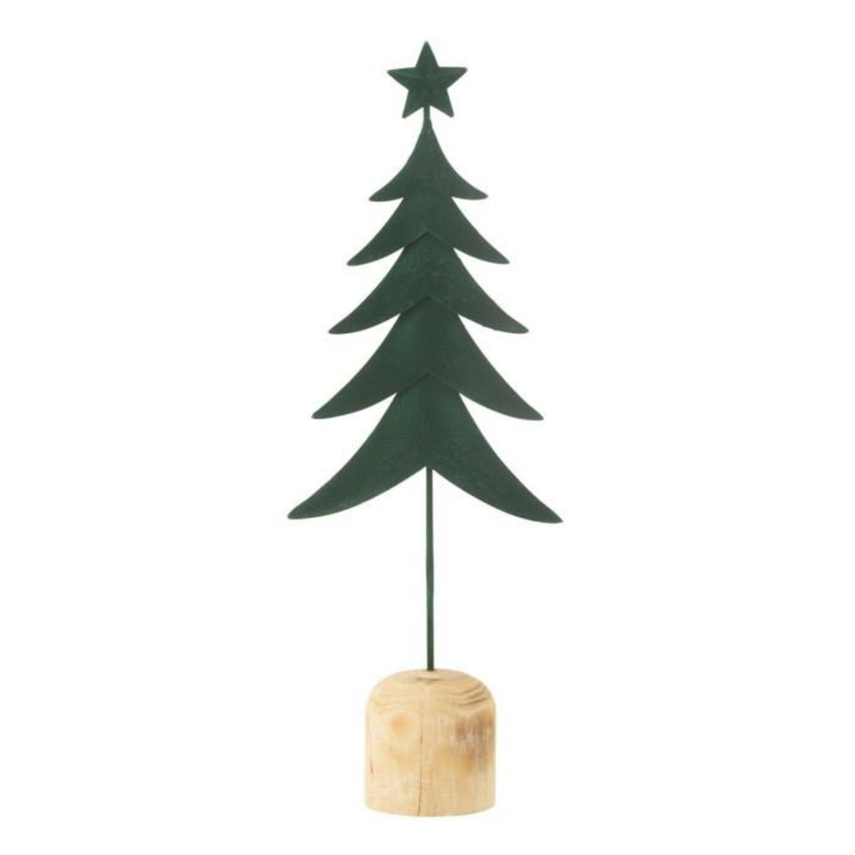 Informations Techniques : Dimensions : L. 17,5 x l. 8 x H. 49 cm Matières : 60% Métal & 40% Bois (Eucalyptus) Spécificités : Déco & Festif Sapin de Noël à poser Socle en bois Vendu à l'unité Poids : 0,32 kg Couleur : Vert Foncé
