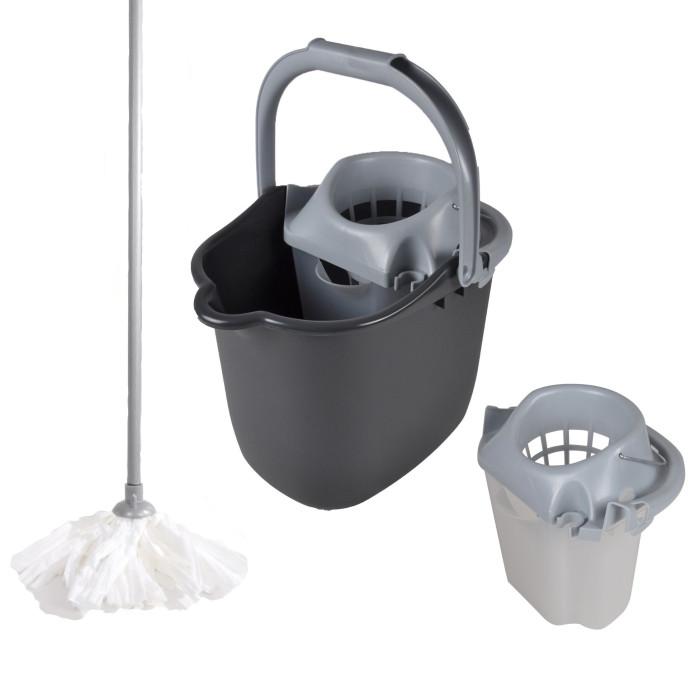 Informations Techniques : Dimensions : L. 120 cm Matière : Plastique Spécificités : Pratique & Utile Seau Essoreur Gradué Bac à clipser, Balai, Support & Plumeau inclus Contenance : 16 L Facile d'entretien & d'utilisation Couleur : Gris