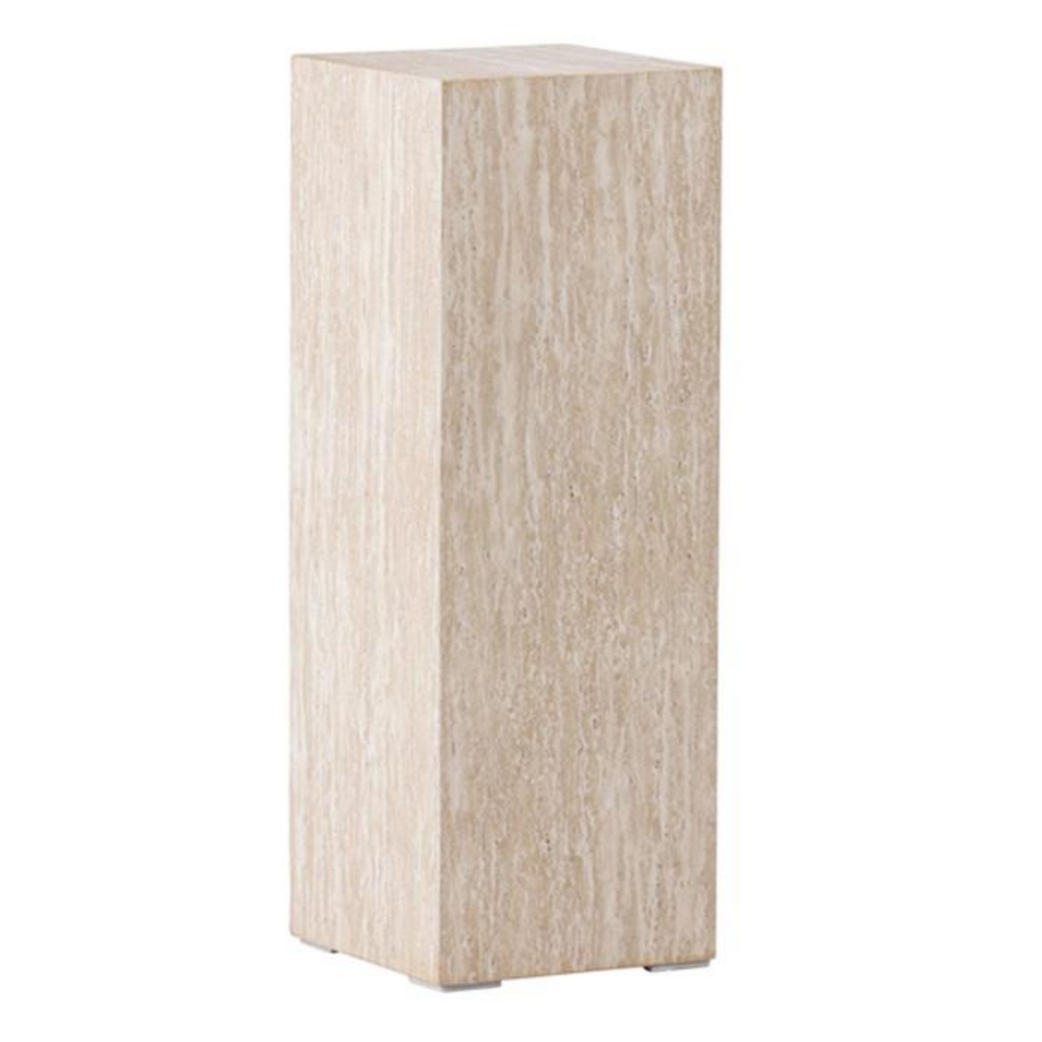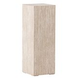 Informations Techniques : Dimensions : L. 23 x l. 23 x H. 65 cm Matière : MDF Spécificités : Pratique & Élégante Sellette décorative carrée Finition effet travertin Certification FSC Nombre de colis : 1 Poids max supporté : 50 kg Poids : 8,8 kg Couleur : Beige