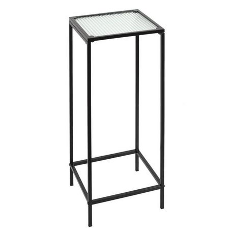 Informations Techniques : Dimensions : L. 30 x l. 30 x H. 70 cm Matières : Métal & Verre Spécificités : Design & Classe Plateau en Verre Facile d'entretien & d'utilisation Couleur : Noir & Transparent