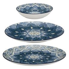 Service de Table 12 Pièces Mandala 27cm Bleu