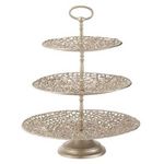 Informations Techniques : Dimensions : D. 46 x H. 58 cm Matière : Métal Spécificités : Tendance & Moderne Serviteur Design Présentoir à Gâteaux 3 Niveaux Poids : 3,2 kg Couleur : Champagne