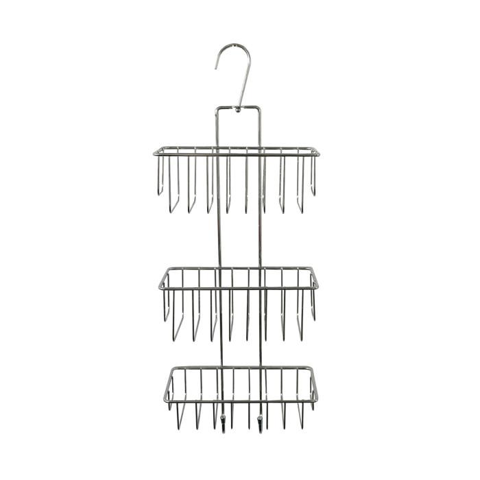 Informations Techniques : Dimensions : L. 22 x l. 14 x H. 59 cm Matière : Métal Spécificités : Pratique & Utile Serviteur de douche Avec 3 niveaux À suspendre Poids : 0,7 kg Couleur : Chrome