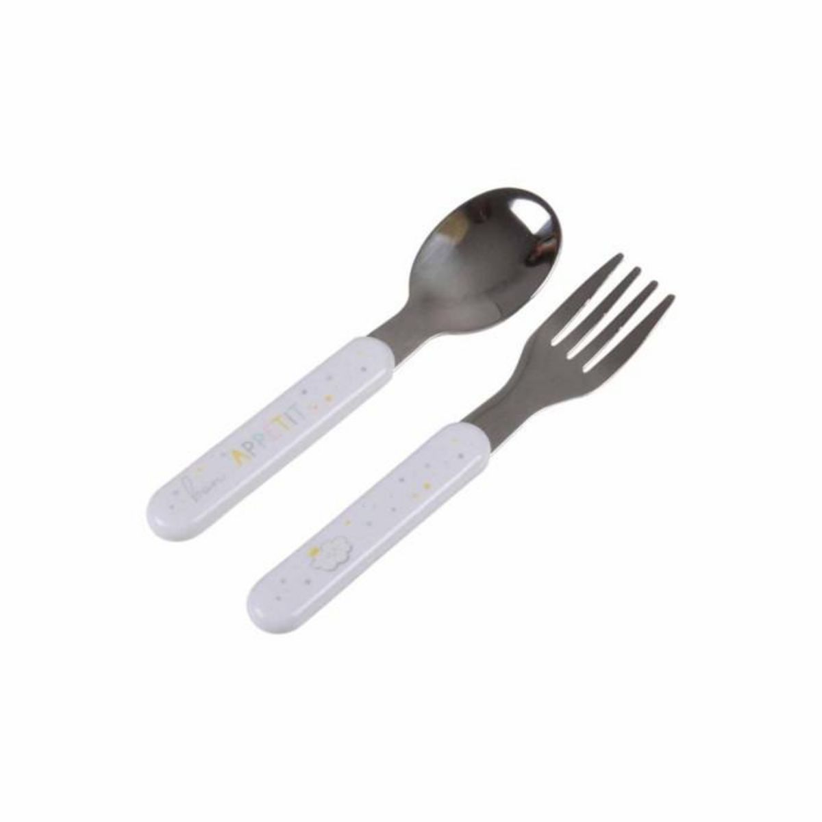 Set de 2 Couverts Bébé Ciel 14cm Blanc