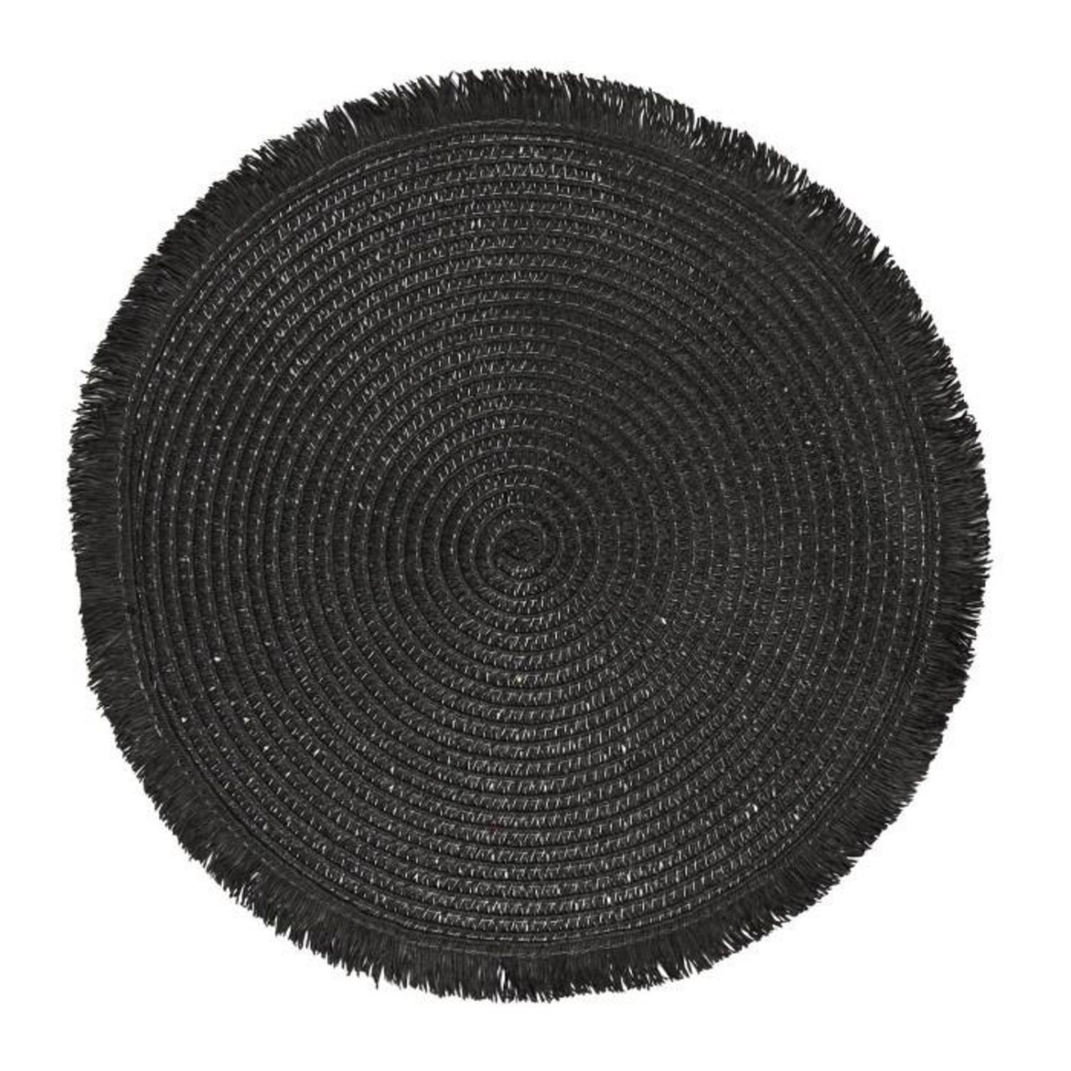 Informations Techniques : Dimensions : D. 38 cm Matière : Papier Spécificités : Pratique & Utile Set de Table Forme Ronde Avec Franges Couleur : Noir