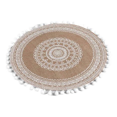 Informations Techniques : Dimensions : D. 38 cm Matière : Jute Spécificités : Tendance & Chic Set de Table Forme Ronde Avec Pompons Imprimé Facile d'Entretien & d'Utilisation Couleur : Blanc