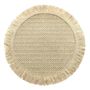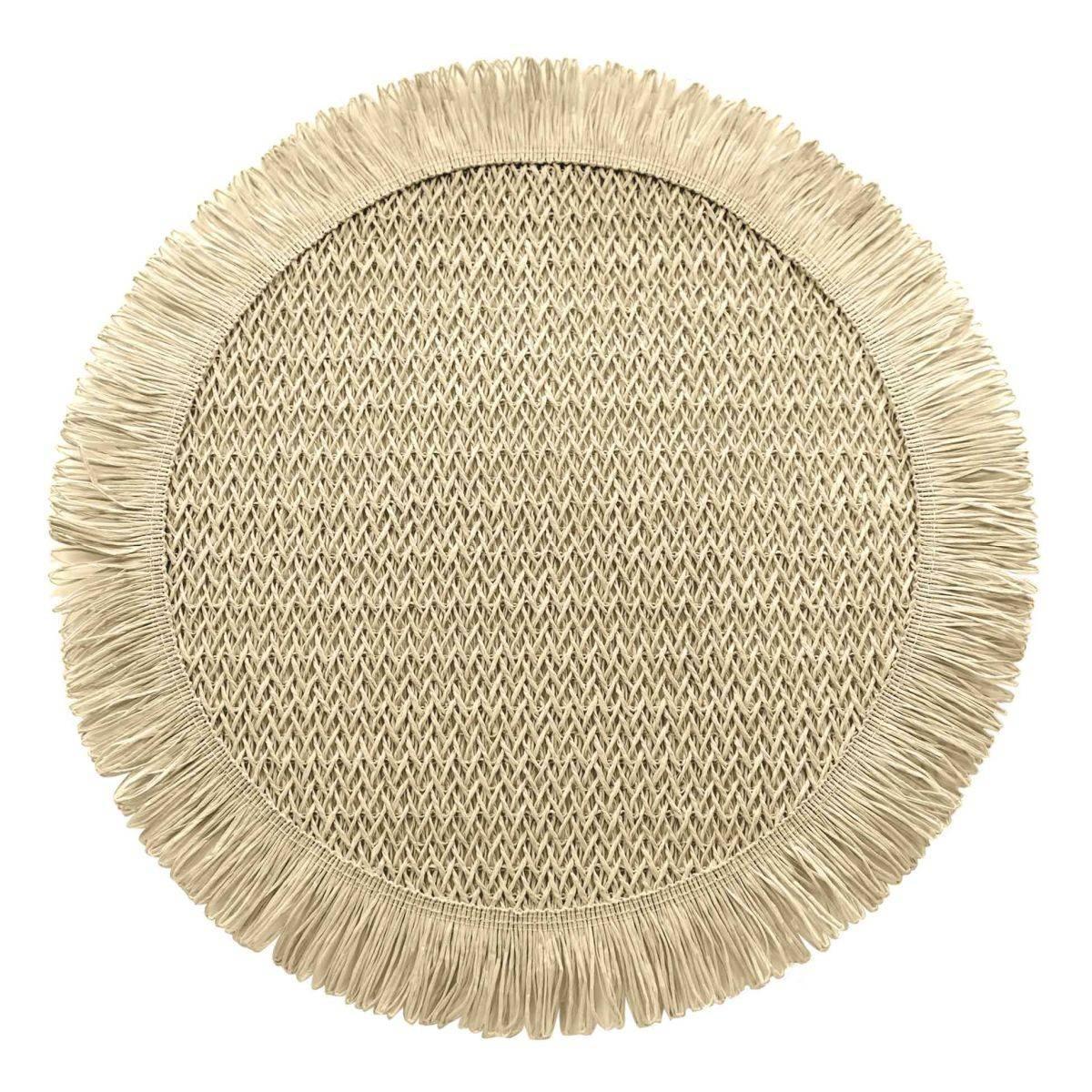 Informations Techniques : Dimensions : D. 38 x H. 0,5 cm Matière : 100% Fibre de Papier Spécificités : Déco & Léger Set de table rond Avec franges Poids : 0,05 kg Couleur : Naturel