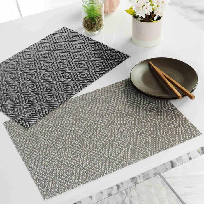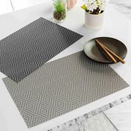 Informations Techniques : Dimensions : L. 30 x l. 45 cm Matière : PVC (70%) & Polyester (30%) Spécificités : Set de table à motifs Motifs : losanges Pratique & Déco Facile d'entretien & d'utilisation Couleur : Taupe & Blanc