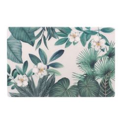 Informations Techniques : Dimensions : L. 28,5 x l. 44 cm Matière : 100% Polypropylène Spécificités : Pratique & Utile Set de table déco Imprimé végétal Entretien facile Forme rectangulaire Poids : 0,06 kg Couleur : Transparent & Vert