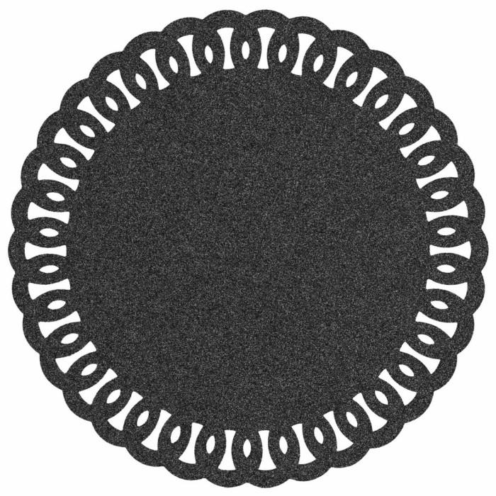 Informations Techniques : Dimensions : D. 38 cm Matière : 100% PVC Spécificités : Pratique & Utile Set de table Avec paillettes Style ajouré Forme ronde Poids : 0,07 kg Couleur : Noir