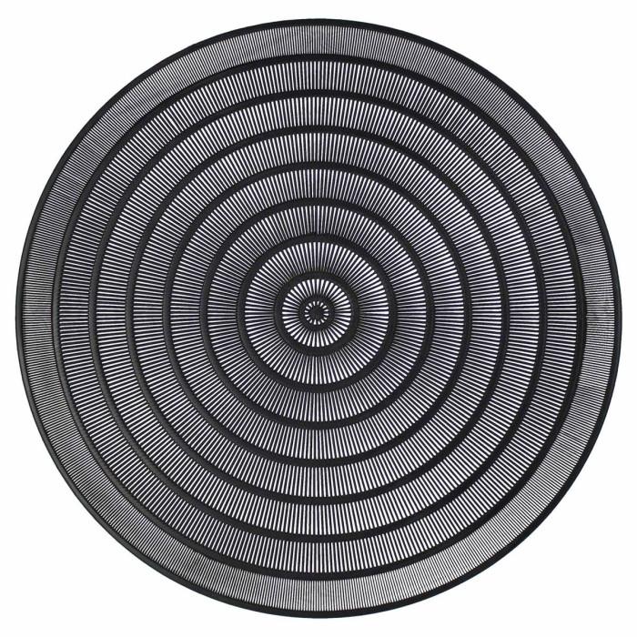 Informations Techniques : Dimensions : D. 40 cm Matière : 100% PVC Spécificités : Pratique & Utile Set de table Style oriental Effet relief Style ajouré Forme ronde Poids : 0,11 kg Couleur : Noir