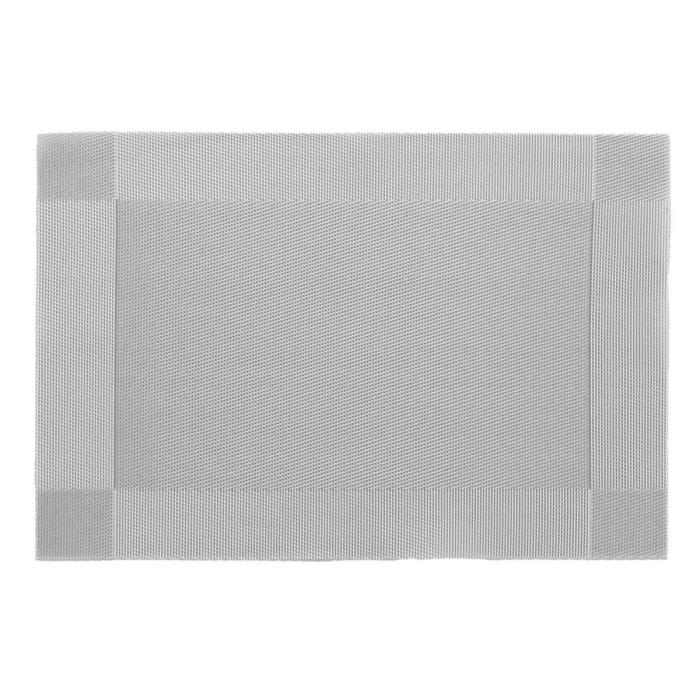 Informations Techniques : Dimensions : L. 45 x l. 30 x H. 0,1 cm Matières : 70% PVC & 30% Polyester Spécificités : Élégant & Moderne Set de table rectangulaire Design unicolore Poids : 0,08 kg Couleur : Argent