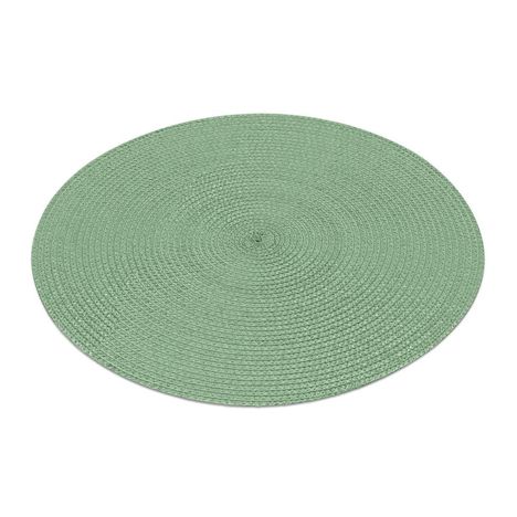 Informations Techniques : Dimensions : D. 35 x H. 0,1 cm Matières : 85% Polypropylène & 15% Polyester Spécificités : Résistant & Coloré Set de table rond Design unicolore Poids : 0,04 kg Couleur : Vert Verveine