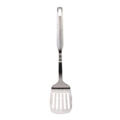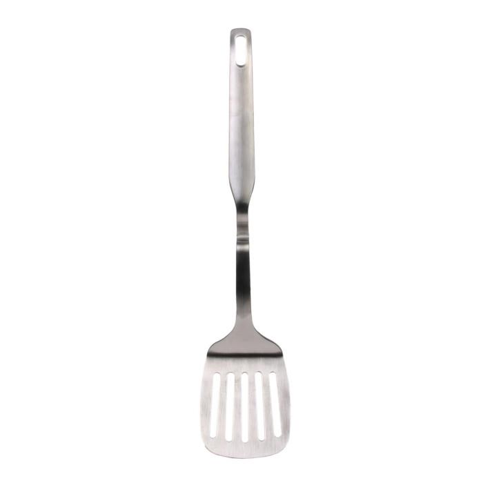 Informations Techniques : Dimensions : L. 7,8 x l. 3,3 x H. 36,5 cm Matières : Métal & Acier inoxydable Spécificités : Pratique & Utile Spatule Ajourée Système d'Accorche ultra-pratique Facile d'entretien Couleur : Argent