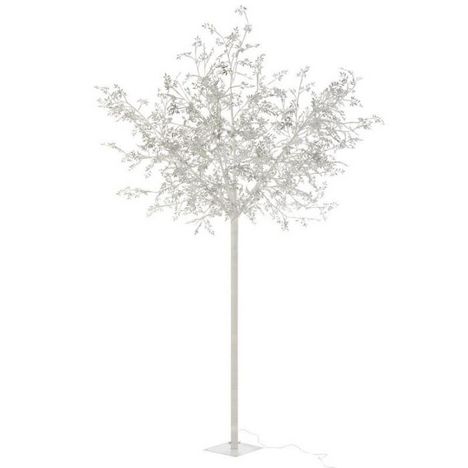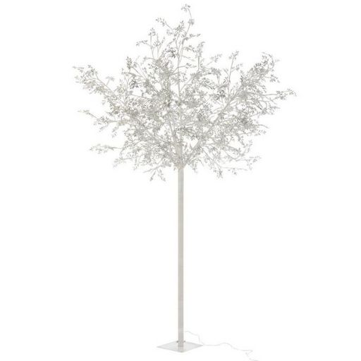 Informations Techniques : Dimensions : L. 140 x l. 140 x H. 250 cm Câble : L. 500 cm Matière : Verre Spécificités : Design & Original Statue Déco Fonctionne à LED Forme Arbre Feuilles Avec Paillettes Puissance : 12W A monter soi-même Poids : 6,06 kg Couleur : Argent