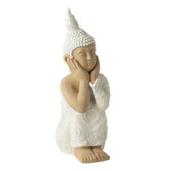 Informations Techniques : Dimensions : L. 31 x l. 21 x H. 61 cm Matières : Oxyde de Magnésium & Fibre Spécificités : Déco & Zénitude Statue bouddha assis Usage intérieur/extérieur Poids : 4,02 kg Couleur : Blanc & Beige