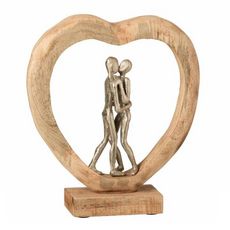 Statue Déco en Bois Couple & Cœur 35cm Naturel