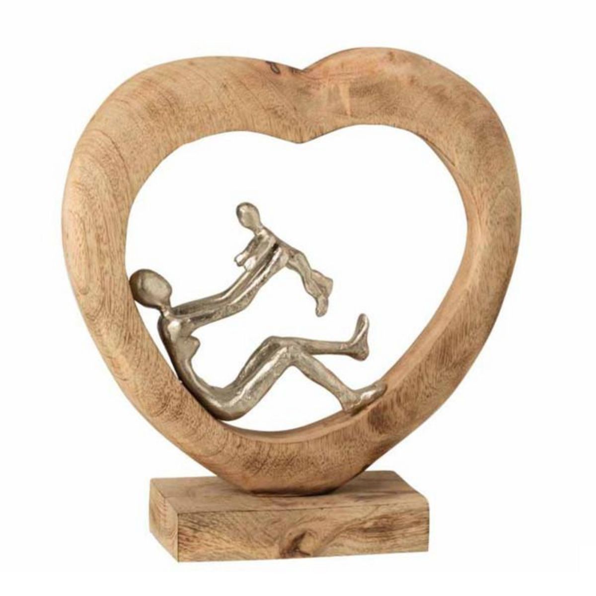 Statue Déco en Bois Parent & Enfant 30cm Naturel