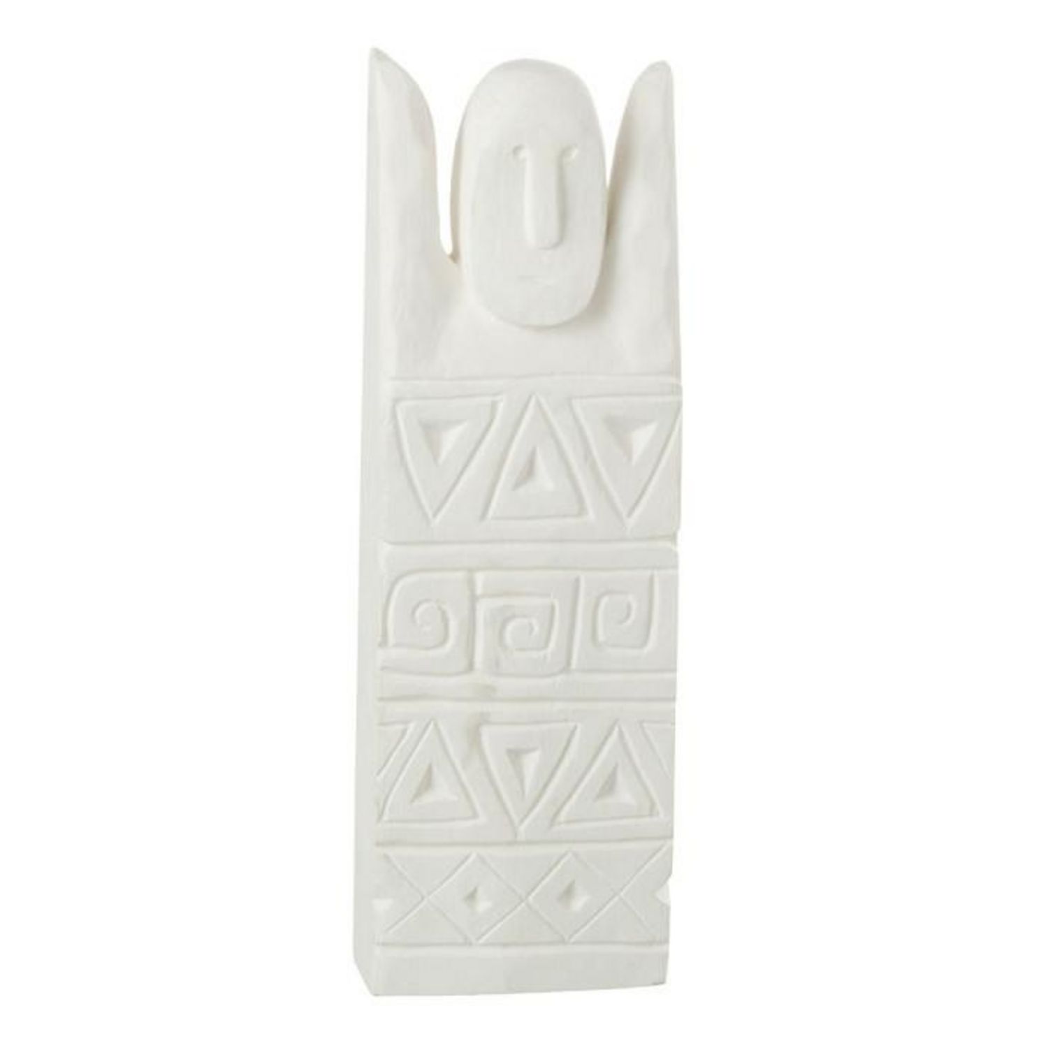 Informations Techniques : Dimensions : L. 16 X L. 6,5 x H. 46 cm Matière : Bois Spécificités : Déco & Utile Statue sculptée Style personnage africain Forme rectangulaire Poids : 2,09 kg Couleur : Blanc