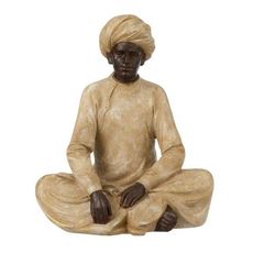Statue Déco en Résine Indien Assis 22cm Beige