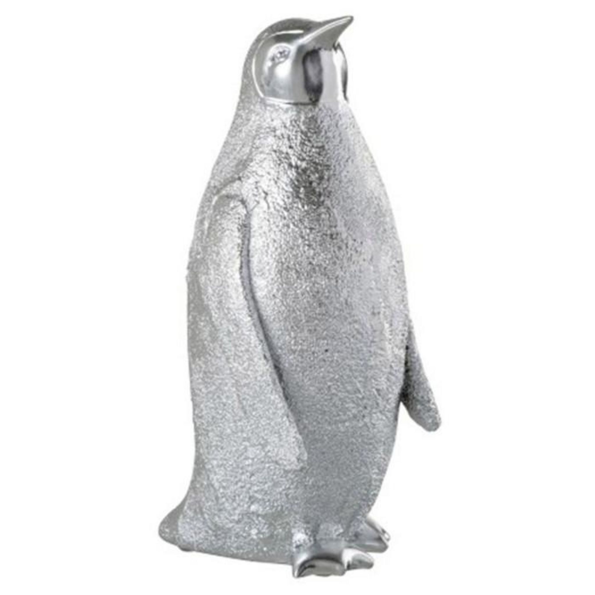 Statue Déco en Résine Pingouin 32cm Argent