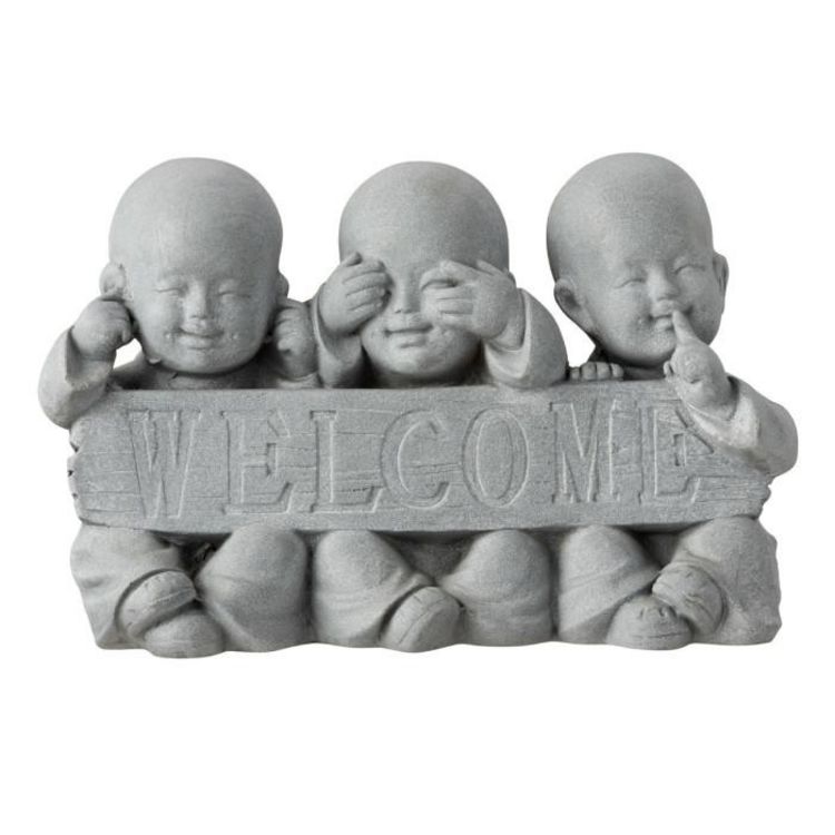 Informations Techniques : Dimensions : L. 42 x l. 18 x H. 28 cm Matière : Résine Spécificités : Tendance & Original Statue Déco 3 Moines Welcome Facile d'entretien & d'utilisation Poids : 5,5 kg Couleur : Gris