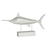 Informations Techniques : Dimensions : L. 72 x l. 8 x H. 37,5 cm Matière : Résine Spécificités : Tendance & Moderne Statue Espadon Sur Pied Poids : 3,66 kg Couleur : Argent