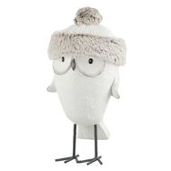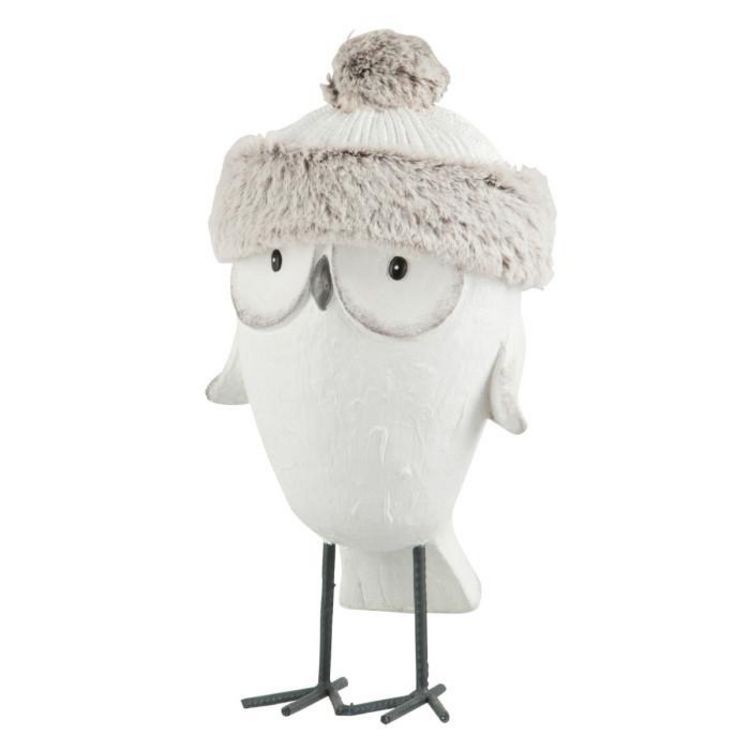 Statue Déco Hibou avec Bonnet 40cm Blanc