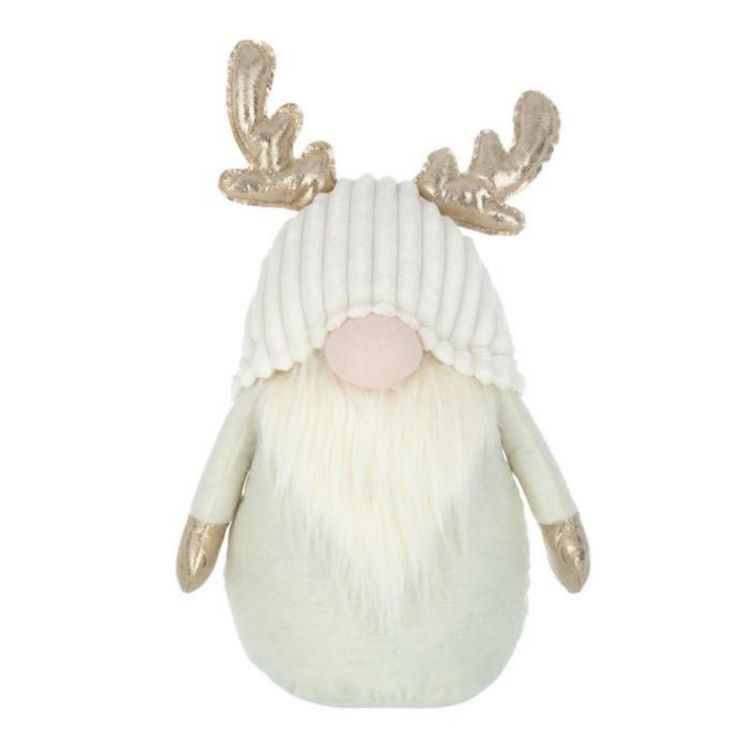 Informations Techniques : Dimensions : L. 28 x l. 13 x H. 53 cm Matière : 100% Polyester Spécificités : Chic & Originale Statue décorative Design lutin Avec cornes de cerf Vendue à l'unité Poids : 1,28 kg Couleur : Beige