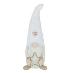 Informations Techniques : Dimensions : L. 21 x l. 13 x H. 59 cm Matière : 100% Polyester Spécificités : Festive & Originale Statue décorative Design lutin Avec étoile à led Poids : 0,64 kg Couleur : Beige