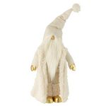 Informations Techniques : Dimensions : L. 30 x l. 22 x H. 90 cm Matières : 95% Polyester & 5% Polyrésine Spécificités : Déco & Festive Statue lutin Avec veste longue Vendue à l'unité Poids : 1,56 kg Couleur : Crème & Or