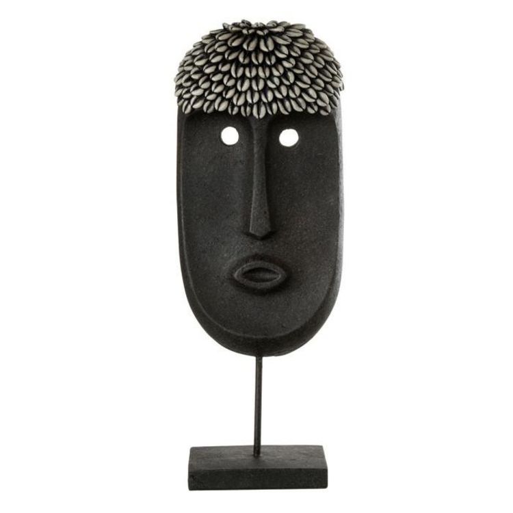 Informations Techniques : Dimensions : L. 18 x l. 10 x H. 51,5 cm Matière : Pierre & Résine Spécificités : Déco & Pratique Statue ethnique En forme de masque Vendue à l'unité Poids : 1,16 kg Couleur : Noir