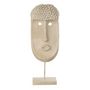 Informations Techniques : Dimensions : L. 19,5 x l. 10 x H. 52 cm Matière : Pierre & Résine Spécificités : Déco & Pratique Statue ethnique En forme de masque Vendue à l'unité Poids : 1,8 kg Couleur : Beige