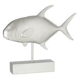 Statue Déco Poisson sur Pied 51cm Argent