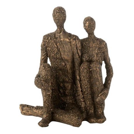Statuette Couple Assis Câlin 21cm Marron & Or
