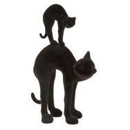 Statuette Déco 2 Parties Velours Chat 35cm Noir