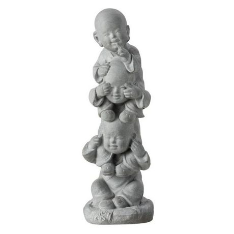 Statuette Déco 3 Moines sur Épaules 58cm Gris