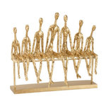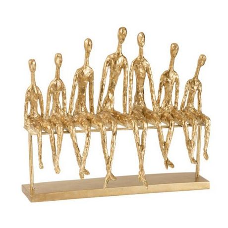 Statuette Déco 7 Personnes sur Banc 39cm Or